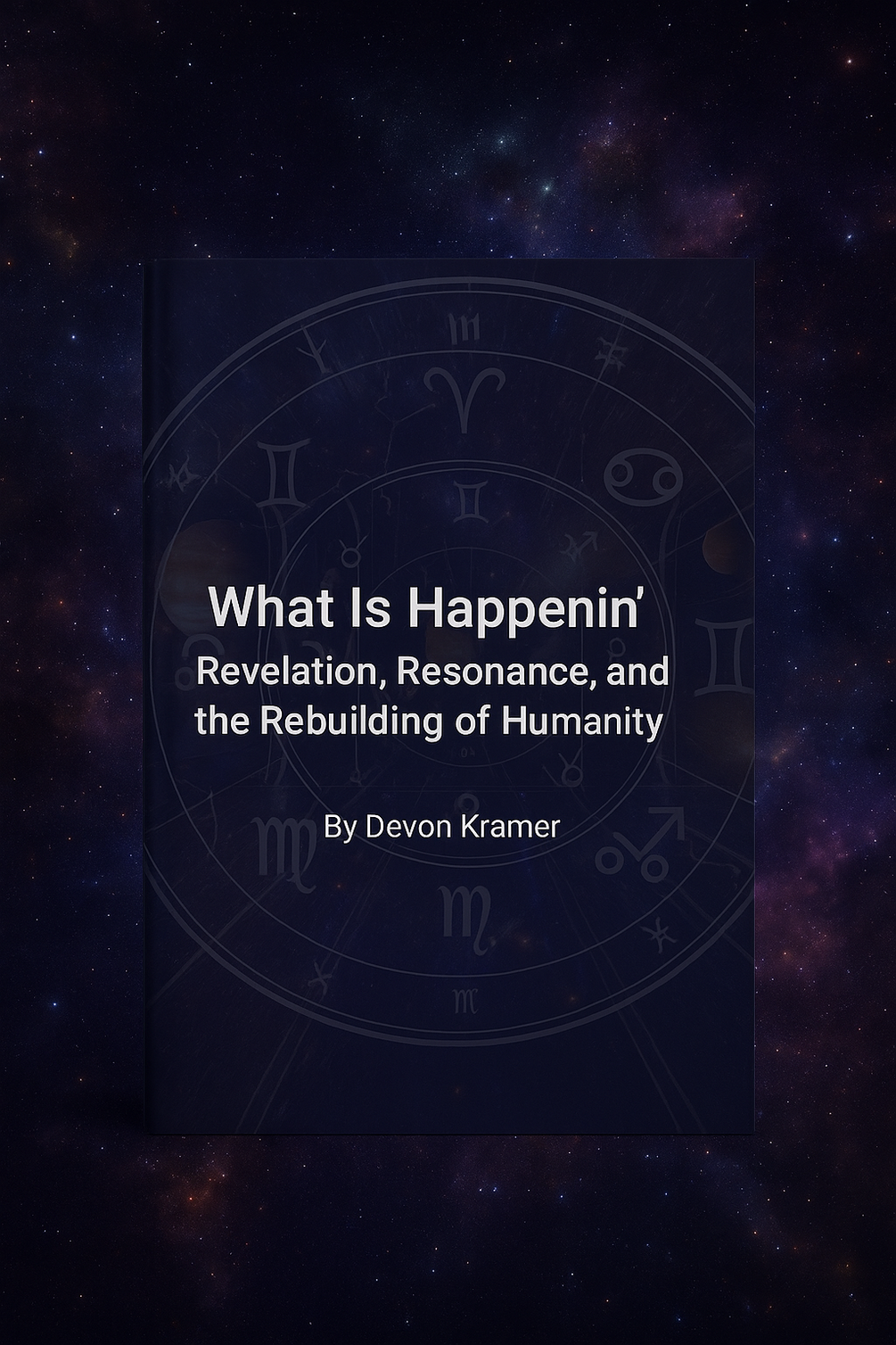 What Is Happenin’ – Revelation, Resonance, and the Rebuilding of Humanity is a spiritual and scientific chronicle of the seven-year pressure shift humanity is living through. Written by Devon Kramer, creator of the Unified Pressure Field (UPF), this work bridges prophecy, astrology, and advanced consciousness theory to show how biblical revelations mirror cosmic alignments and field mechanics.